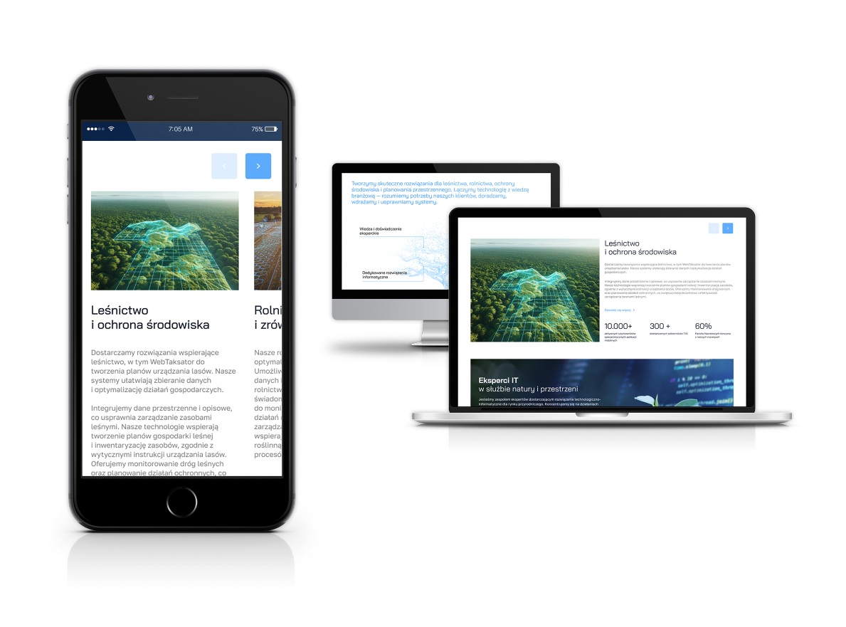 Dla Taxus IT stworzyliśmy stronę internetową, która łączy wiedzę ekspercką z nowoczesnym designem. Projekt porządkuje szeroką ofertę rozwiązań – od aplikacji terenowych po systemy monitoringu środowiska – i prezentuje je w sposób intuicyjny, zrozumiały i atrakcyjny wizualnie. To narzędzie, które wspiera wizerunek Taxus IT jako lidera technologii środowiskowych.